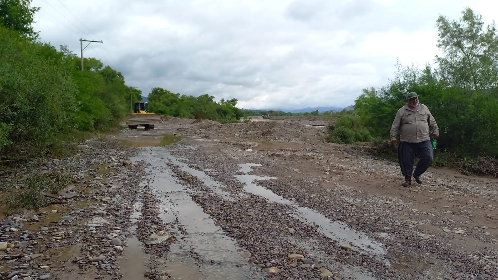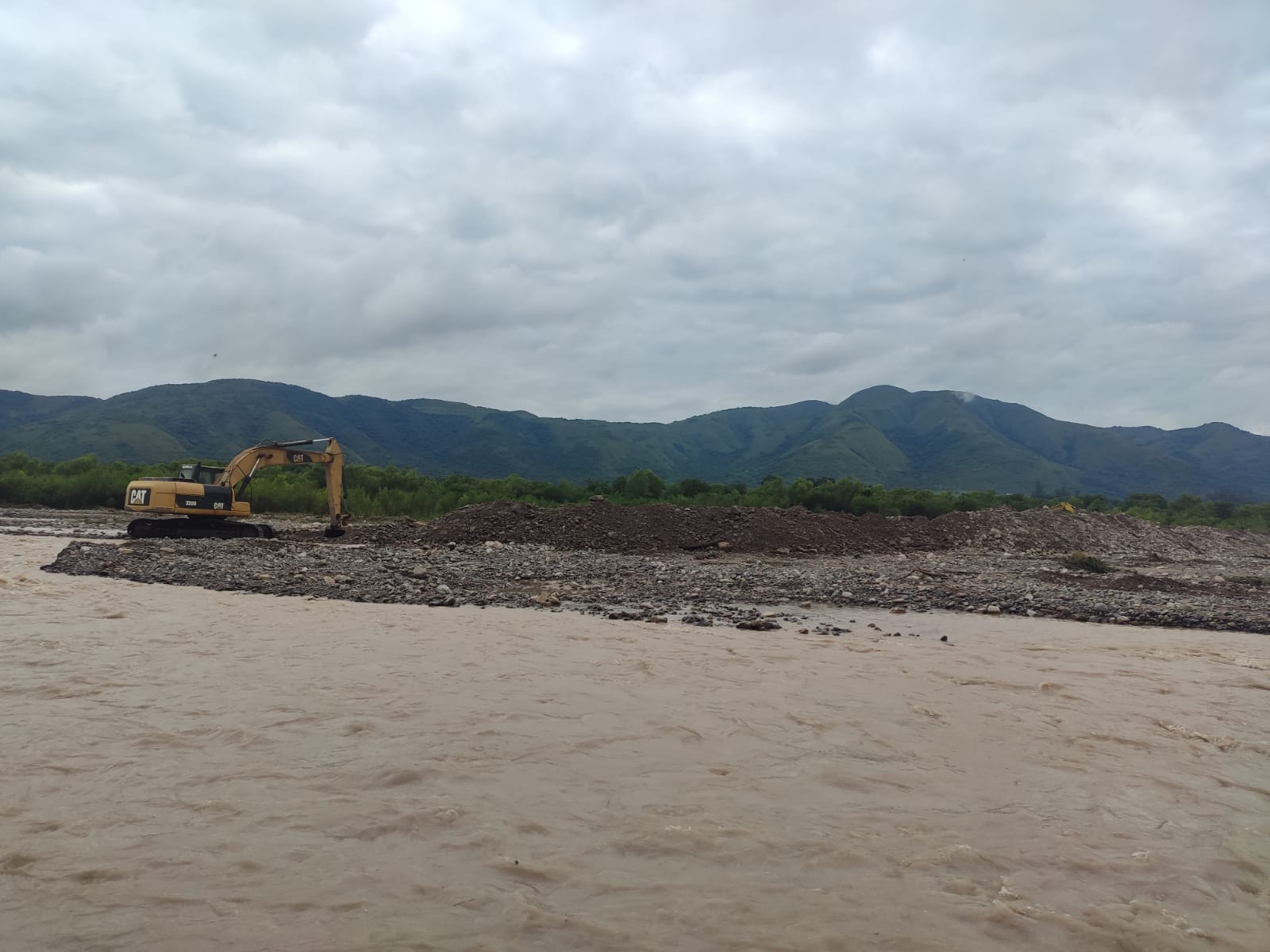 A partir de media mañana, se sumó una máquina topadora de Vialidad de la Provincia, que colabora en las tareas de contención en los márgenes del río, reforzando el trabajo que se viene desarrollando.