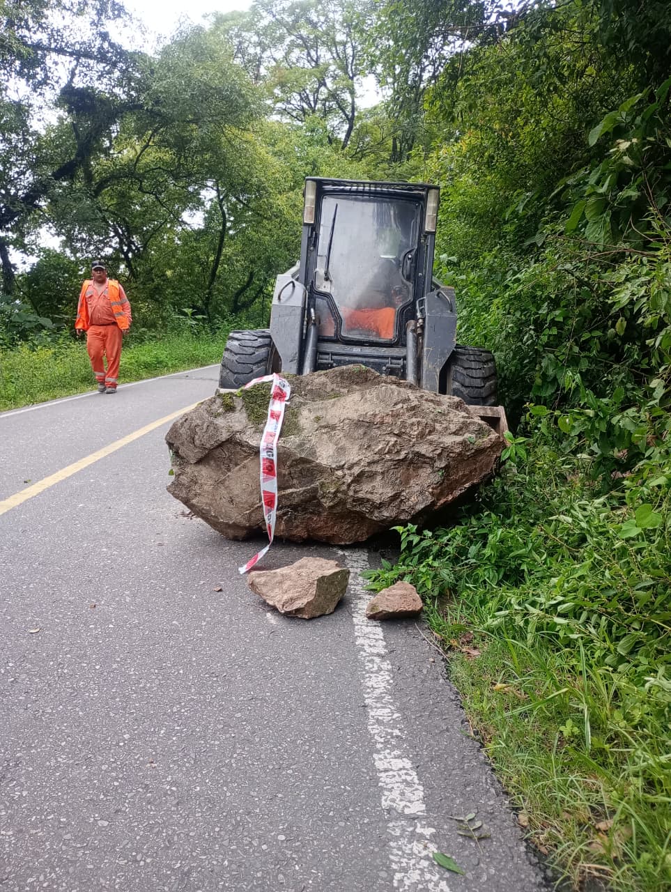 Sobre la RN 9, altura Km 1618 el tránsito estuvo a media calzada y el Municipio despejó la ruta, en tanto Vialidad Nacional despejó rocas en otros tramos.