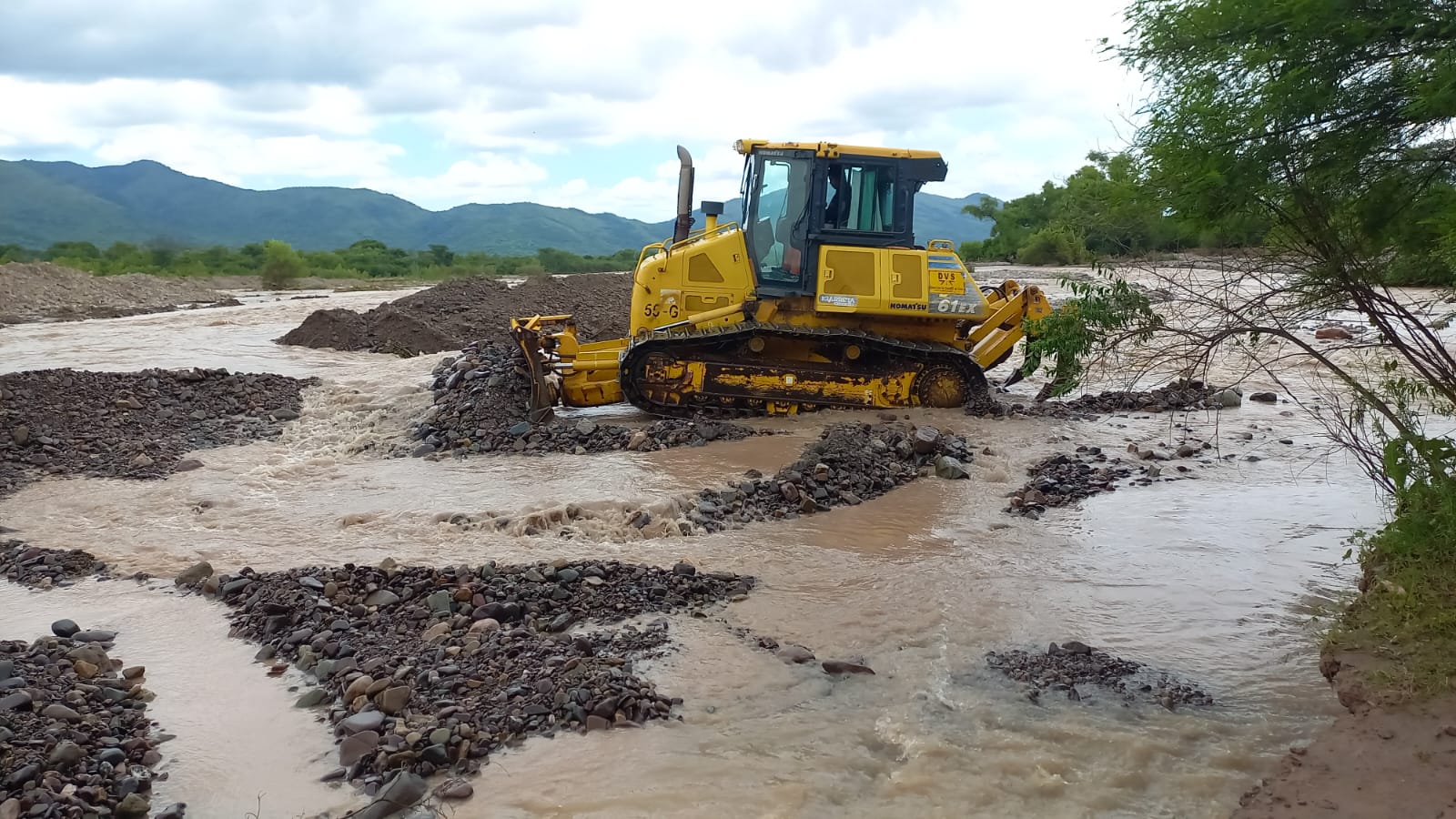 A partir de media mañana, se sumó una máquina topadora de Vialidad de la Provincia, que colabora en las tareas de contención en los márgenes del río, reforzando el trabajo que se viene desarrollando.